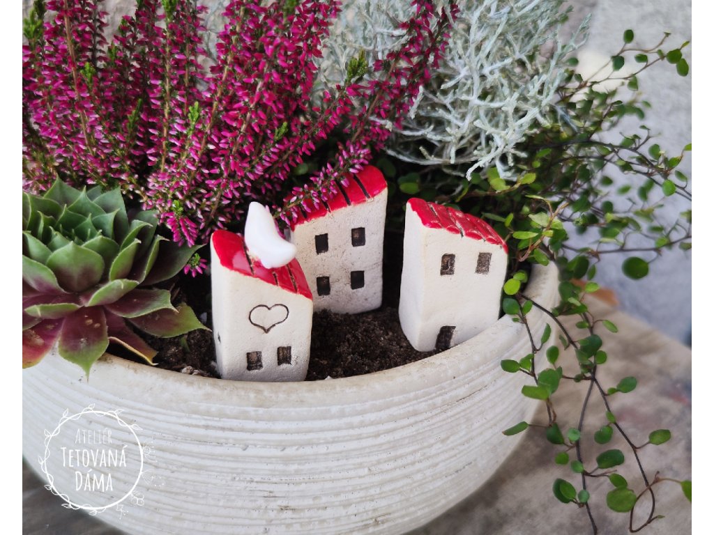 Keramické domečky vykouzlí úsměv návštěvě hned u dveří. Budou slušet květníkům s podzimními vřesy nebo třeba skalničkami. Domečky jsou ze šamotové hlíny, která může být venku celoročně. A pokud máte raději dekorace na stole, vytvoří klidnou rodinou atmosféru i tam. 🤎